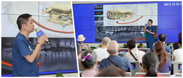 与此同时,两位专业解说也通过实时画面,为观众讲解了手术中的关键操作与技术要点——从面部消毒到备洞精度,再到植体植入,每一个细节都体现着规范化医疗的质量把控,极大提升了观众对种植牙手术的认知水平和辨别能力。