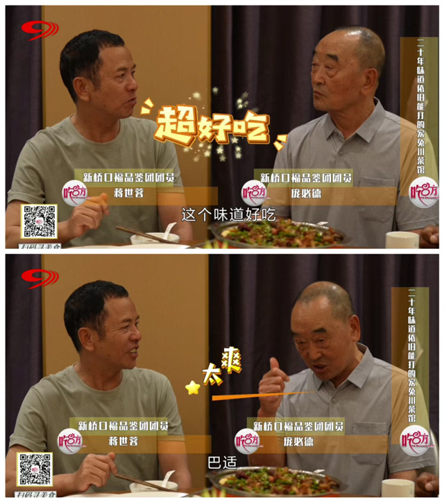 口福挑战第一关,节目组便呈上了镇店之宝——青椒兔,先煸后炸的烹饪方式将花椒的麻与青椒的香完美融合,从而营造出麻辣干香、外酥里嫩的风味与口感。只见口福品鉴团团员们嚼得轻松自在,丝毫不见曾饱受缺牙困扰的窘态。在新桥口腔种了全口牙的蒋叔叔连连赞道:“这个味道好吃!”而其好友庞叔叔曾经面对美食只能望而却步,如今种好牙也能在细细品味后点评一番:“成都的天气很适合吃麻辣,巴适!”
