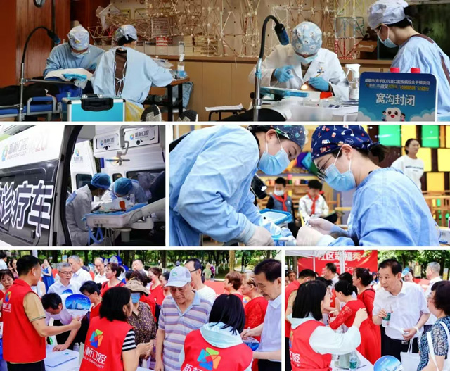 新桥口腔多年来始终秉持公益初心,作为“优秀志愿者服务单位”、青羊区退役军人服务超市联盟单位、成都市儿童口腔疾病综合干预项目执行单位,在口腔医疗领域充分发挥专业优势,通过组建便民医疗服务队,并启用数辆口腔移动诊疗车,常年面向社会开展便民医疗服务与多样化志愿者活动。定期走进校园、社区、企业,让专业医疗资源触手可及,在一次次温暖实践中,将“全口、全家、全生命周期”的口腔健康理念落地生根。