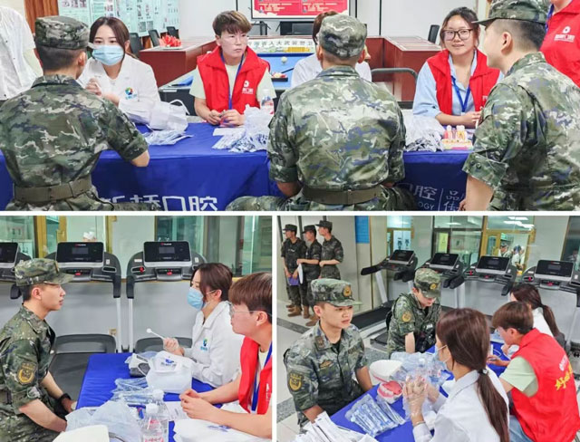 活动现场,新桥口腔的专业医护团队为警卫连官兵提供了全方位的口腔健康服务,涵盖龋齿、牙周病、牙齿排列等常见口腔问题的筛查。针对官兵们高强度训练和执行任务的特点,医生们特别讲解了口腔健康对整体状态和战斗力的重要性,并一对一提供了个性化的口腔卫生指导,手把手教授“巴氏刷牙法”等专业护理技巧。医院还精心准备了“爱牙礼包”,让科学的护齿理念伴随官兵们的日常生活。