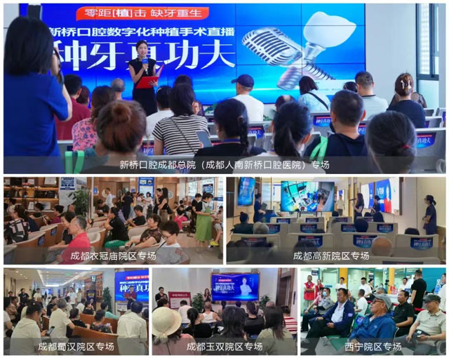 7月25日,新桥口腔成都高新院区数字化种植手术直播顺利落幕,标志着本月“种牙真功夫”系列活动圆满收官。本月直播从成都衣冠庙院区启航,随后成都玉双院区、西宁院区以及新桥口腔成都总院、蜀汉、高新院区依次接力。6场直播,场场座无虚席,新桥口腔通过打造透明化、专业化、高水平的种植手术直播,向到场见证的缺牙市民展现出新桥口腔的专业实力与底气,收获了一致好评与点赞!