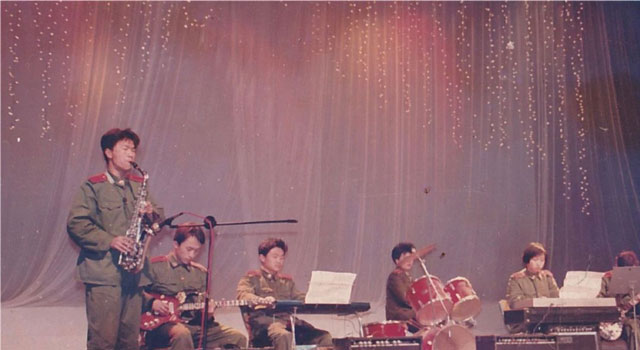 参加校园音乐节演出(左二为李峰)