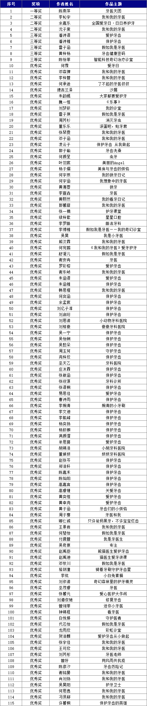 获奖名单公示