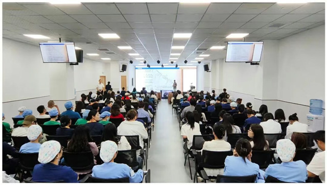 10月9日,原华西口腔资深口腔颌面外科专家余自能教授为新桥口腔成都总院全体员工讲授了《口腔局部麻醉注射部位及常见并发症分析》课程,他结合基础理论和多年临床经验,为大家详细讲解了口腔局部麻醉的临床操作规范和技术要领。