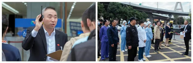 演练前,医院成立专项领导小组,下设协调指挥、疏散引导、对外联络、院区抢救、安抚劝导、警戒隔离、强力控制、现场清理等职能小组,职责清晰、分工明确。通过引入火车南站街道应急办、派出所、微消站等外部专业力量,构建起内外协同、联动响应的一体化应急工作体系。